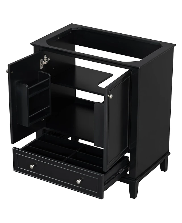 Bathroom Vanity without Sink Base Only Multifunctional Bathroom Cabinet with Doors and Drawer Solid Frame and Mdf Board Black