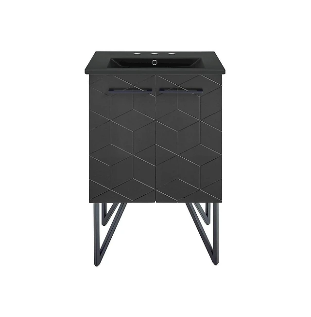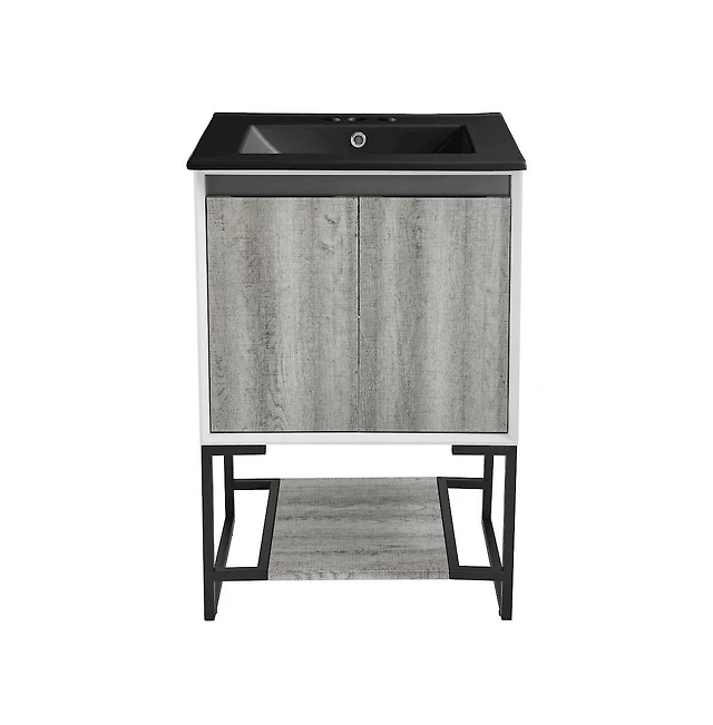 Swiss Madison Cascade 24 in. White Oak Bathroom Vanity With Black, 3-Hole Ceramic Sink Top