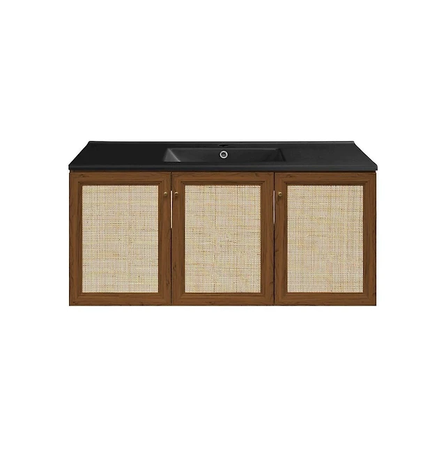Swiss Madison Nadar 24 in. Brown Walnut Bathroom Vanity With Black, 3-Hole Ceramic Sink Top
