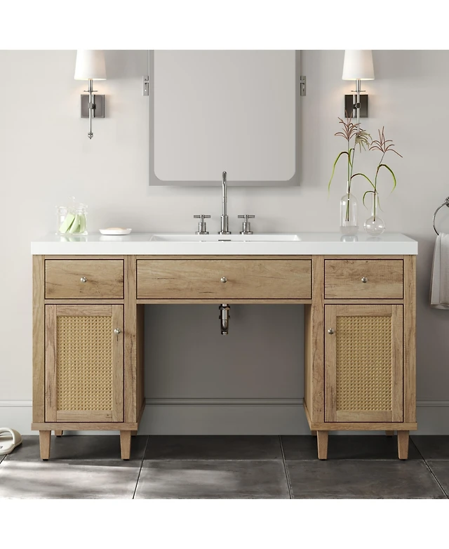 Vanirror 60-Inch Double Bathroom Vanity in Matte White – Solid Wood Cabinet with Marble Countertop and Ceramic Undermount Sink