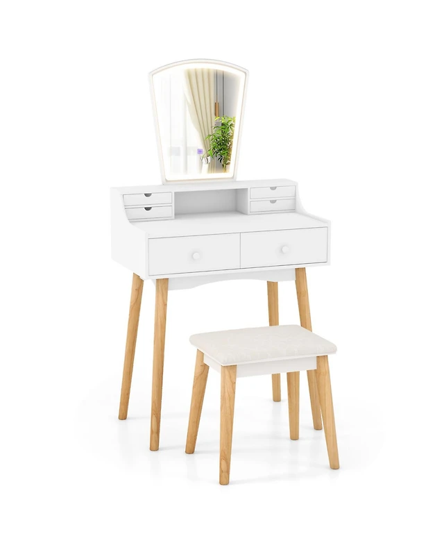 Touch Screen Vanity Makeup Table Stool Set with Lighted Mirror