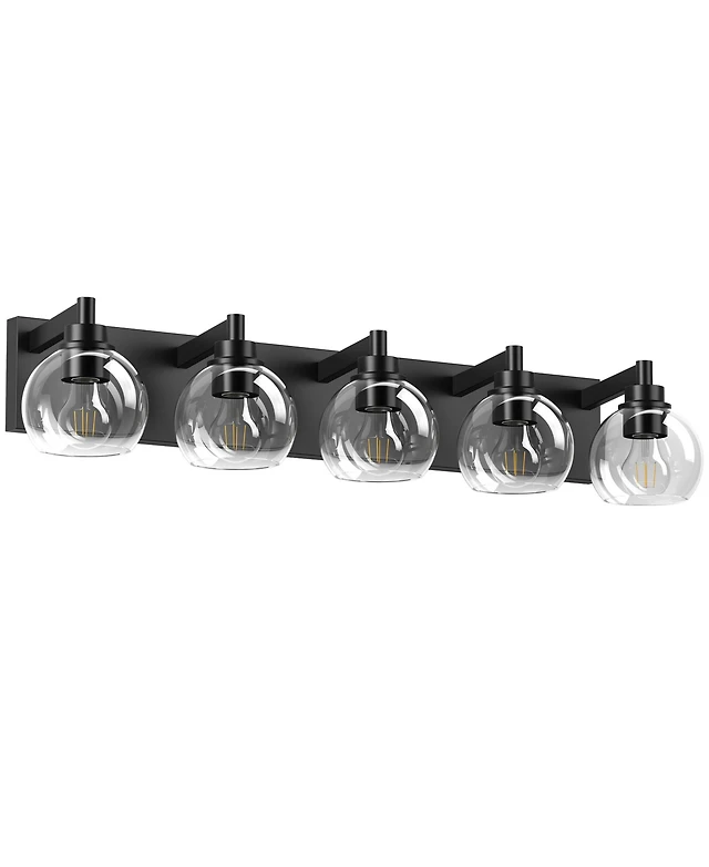 Busdays Bathroom Light Fixtures Over Mirror 5-Lights Vanity Light with Clear Globe Glass Shade Black Wall Sconce Vanity Lighting (Bulbs Not Included