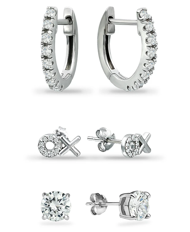 Giani Bernini 3-Pc. Set Cubic Zirconia, Crystal, & Polished Stud Earrings in Sterling Silver, Created for Macy's
