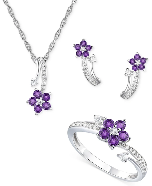 2-Pc. Set Garnet (9-7/8 ct. t.w.) & Amethyst (3-1/3 ct. t.w.) Halo Pendant Necklace & Matching Stud Earrings in Sterling Silver