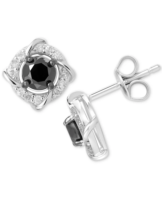 Black Diamond Cluster Stud Earrings (1/6 ct. t.w.) in Sterling Silver