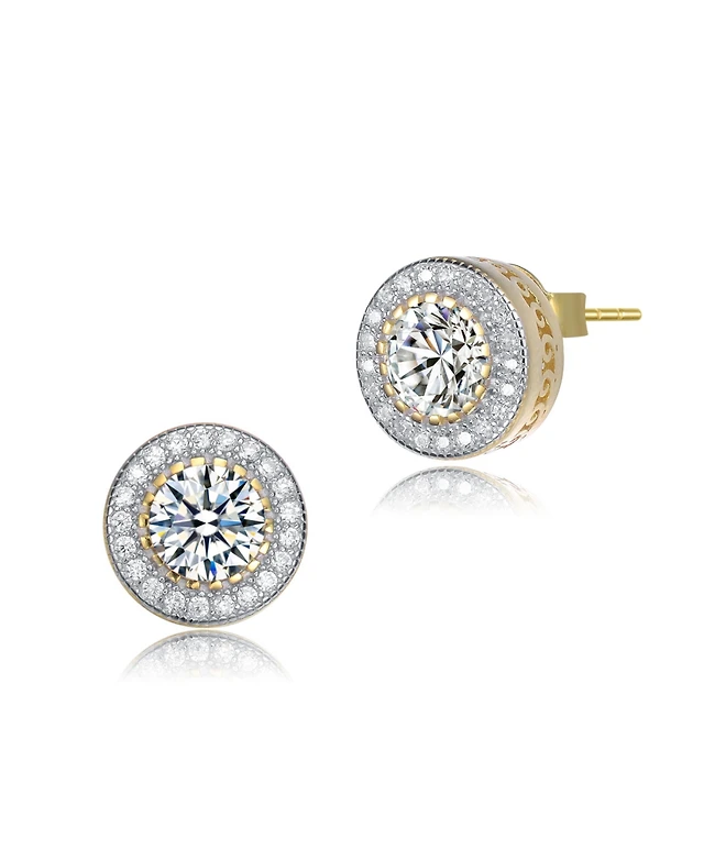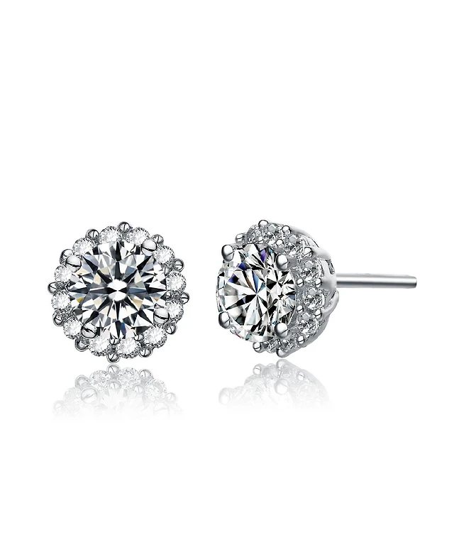 Birthstone Round Cubic Zirconia Halo Solitaire Stud Earrings Silver Plate