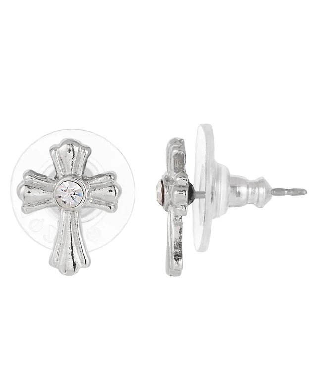 Anne Klein Silver-Tone Crystal Flower Stud Earrings