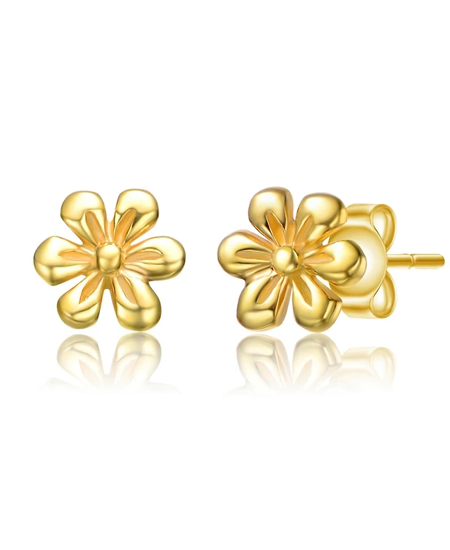 Genevive Sterling Silver 14K Gold Plated Heart Design Stud Earrings