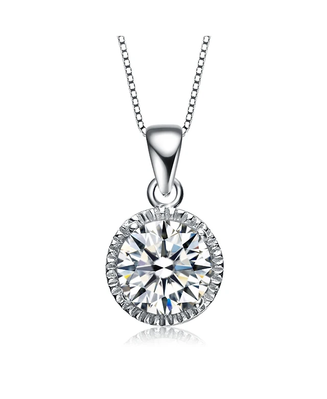 Sterling Silver White Gold Plated Cubic Zirconia Round Stud Style Necklace