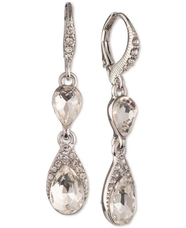 Lauren Ralph Glass Stone Silver-Tone Drop Hoop Earrings (also Gold-Tone)