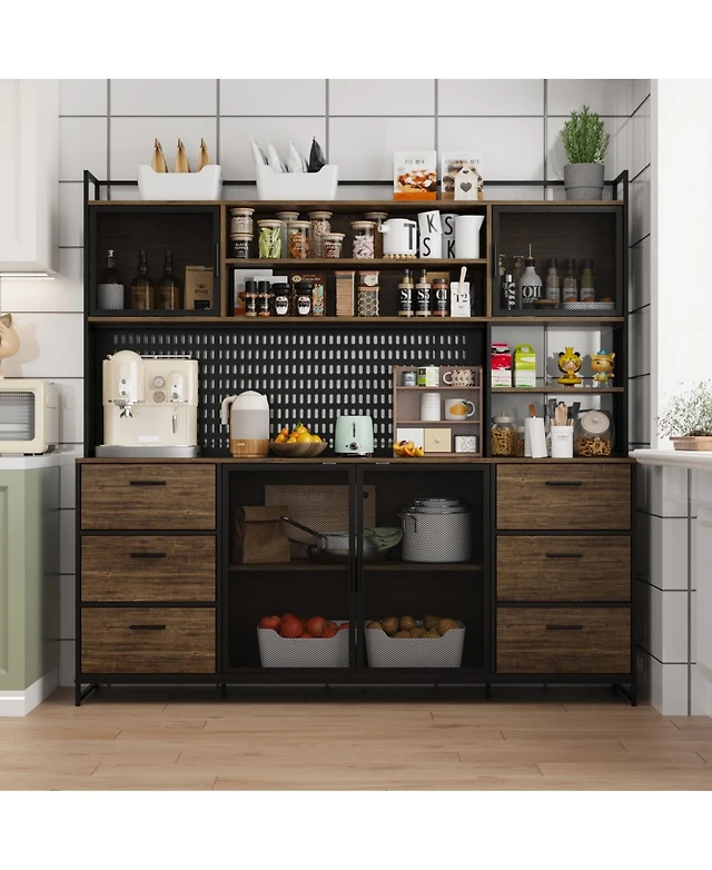 gaomon 71" Kitchen Pantry Cabinet, Wooden Tall Sideboard Buffet Cabinet with Microwave Stand, Pegboard and Hutch, Pantry Storage Organizers Coffee Bar