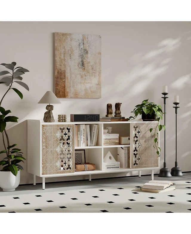 Kings Brand Furniture Santi 4-Door Buffet Display Cabinet, White