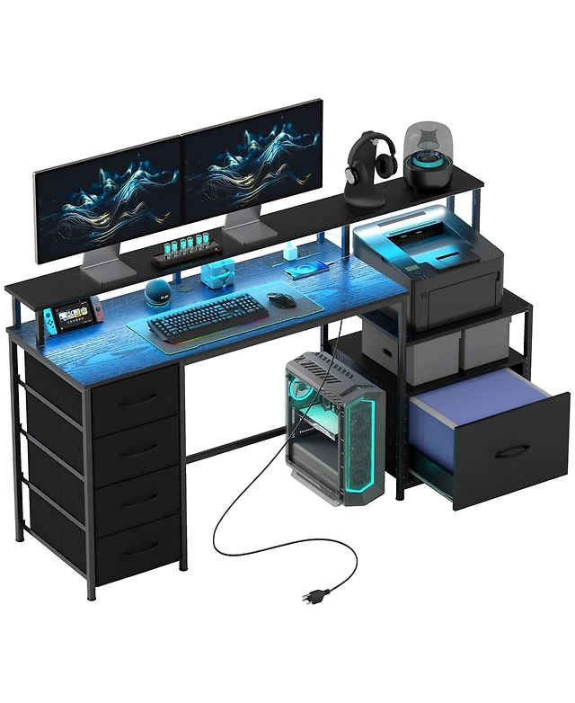 livelylodge Murphy Bed Cabinet, Queen Murphy Bed with Usb and Charging Ports, with Drawer Includes Storage Cabinet Suit for Guest Room, Black Walnut C