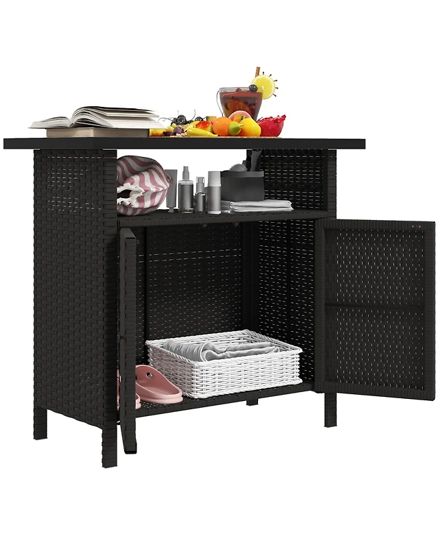 Streamdale Rattan Buffet Cabinet - Black, Push-to-Open, Adjustable Shelves