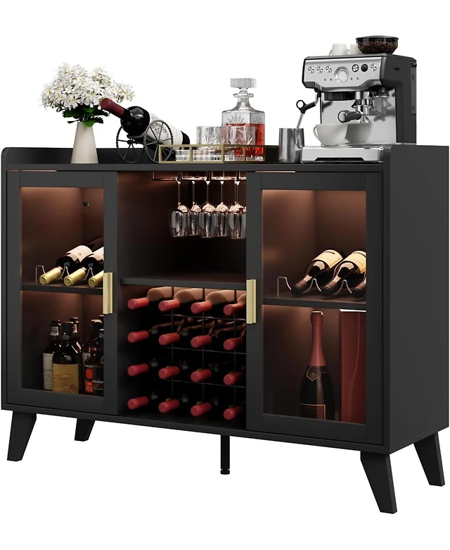 gaomon Wine Bar Cabinet with Led Light, Coffee Bar Cabinet with Power Outlet,Kitchen Buffet Sideboard with Storage,Buffet Sideboard with Acrylic Doors