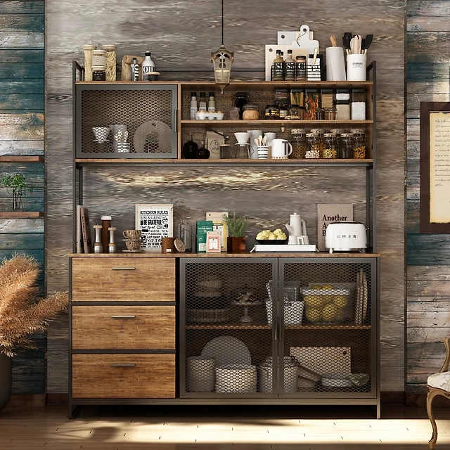 Wooden Kitchen Storage Cabinet with Adjustable Shelves for Organized Kitchen Space