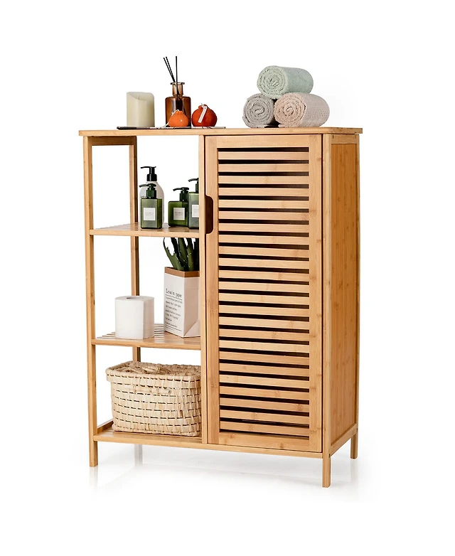 Volenca 57 Inch Bathroom Tall Cabinet with 1 Door and 4 Shelves Narrow Storage Unit with Adjustable Shelves