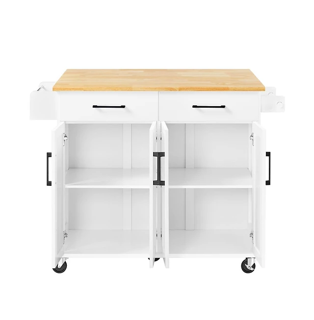 36” H Kitchen Island on Wheels with Solid Wood Tabletop White