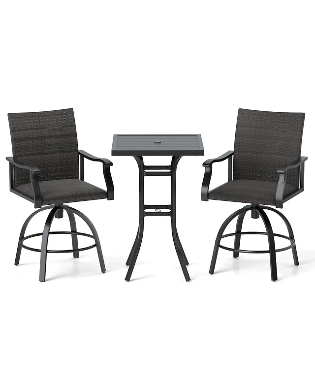 Sugift 3 Pieces Outdoor Patio Bar Table Stool Set-Brown