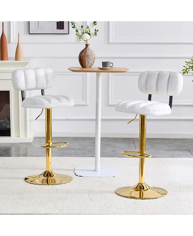 Streamdale Furniture Streamdale Velvet Bar Stools with Gold Legs and Chrome Base, Adjustable Height