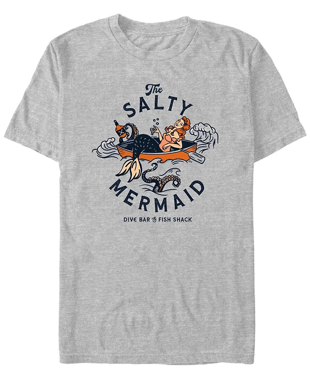 Design By Humans Men's The Salty Mermaid Dive Bar Fish Shack Cool Retro Travel A Short Sleeve T-Shirt