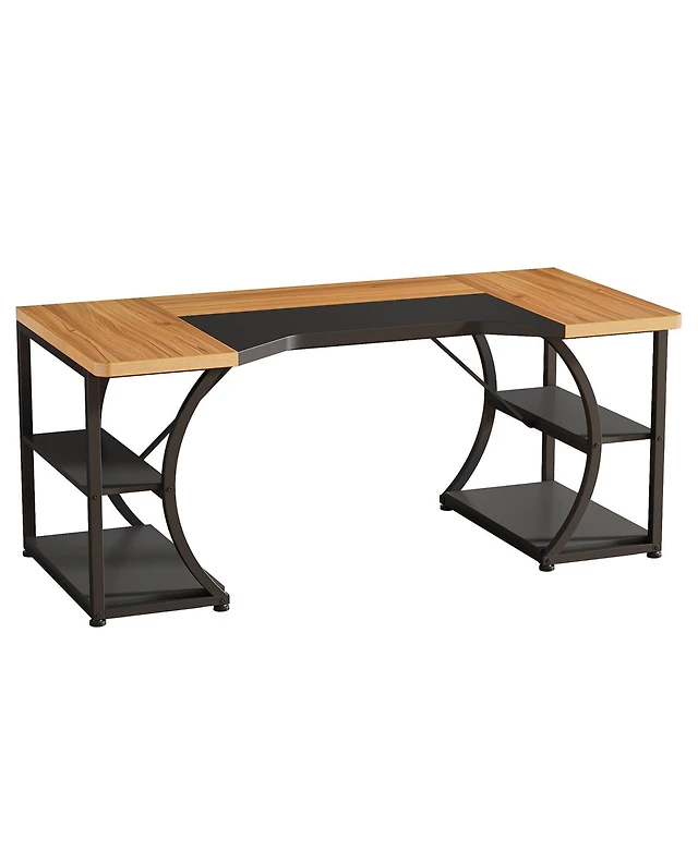 Tribesigns 63" Executive Desk with Bottom Shelves, Large Office Computer Desk, Modern Simple Workstation Business Furniture (Walnut & White)