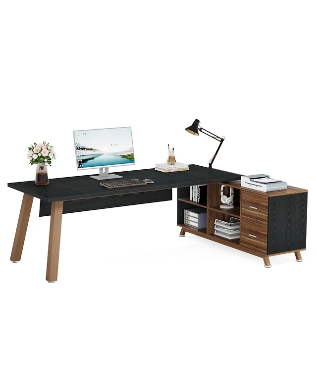 Tribesigns L Shaped Computer Desk with Drawers, Modern Corner Home Office Reversible Storage Cabinet, Long Study Writing Workstation