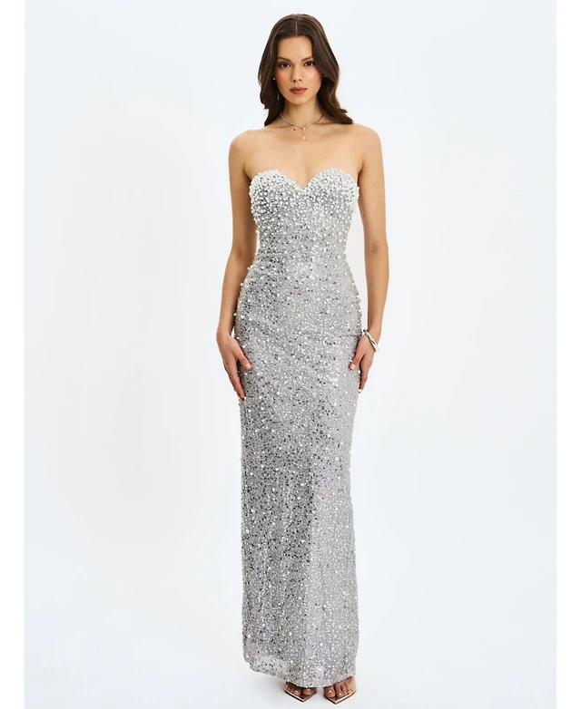 Miss Circle Quimera Beaded Cape Halter Maxi Dress