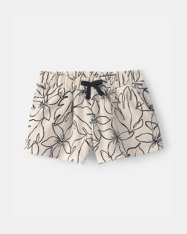Toddler Girl Floral Crinkle Shorts - Black/Ivory