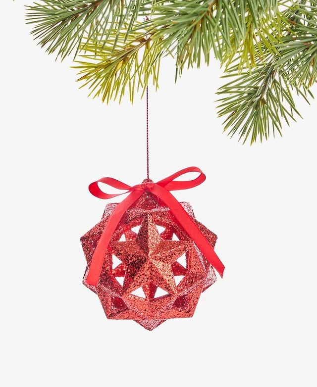 Holiday Lane Glittered Plastic Poinsettia Wreath Ornament, Created for Macy's