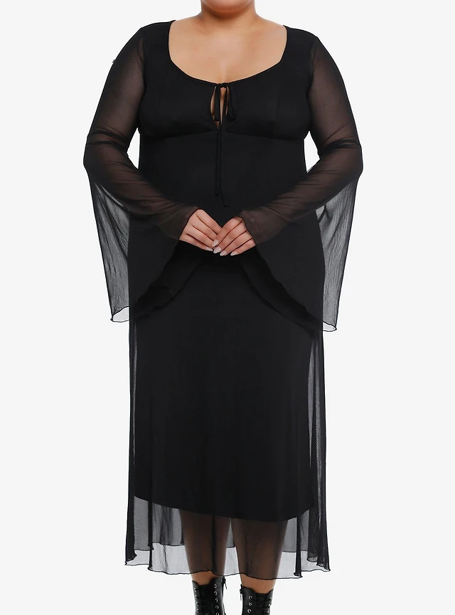 Cosmic Aura Black Mesh Bell Sleeve Midaxi Dress Plus Size