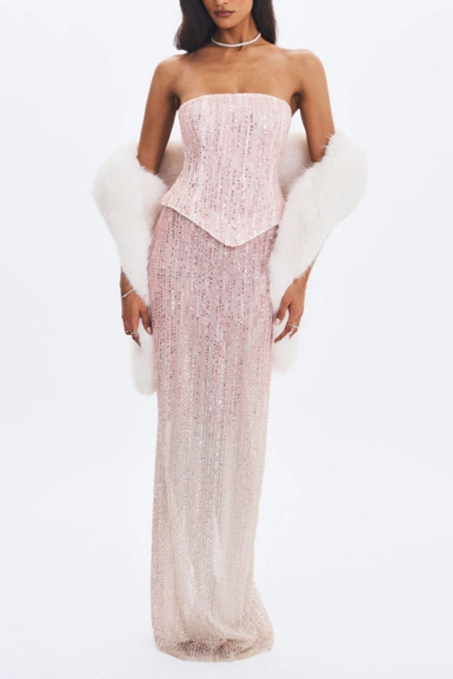 Miss Circle Tosca Beaded Gradient Strapless Maxi Dress