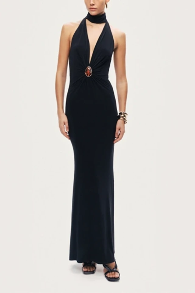 AFRM Brooklyn Mesh Y-Neck Halter Maxi Dress