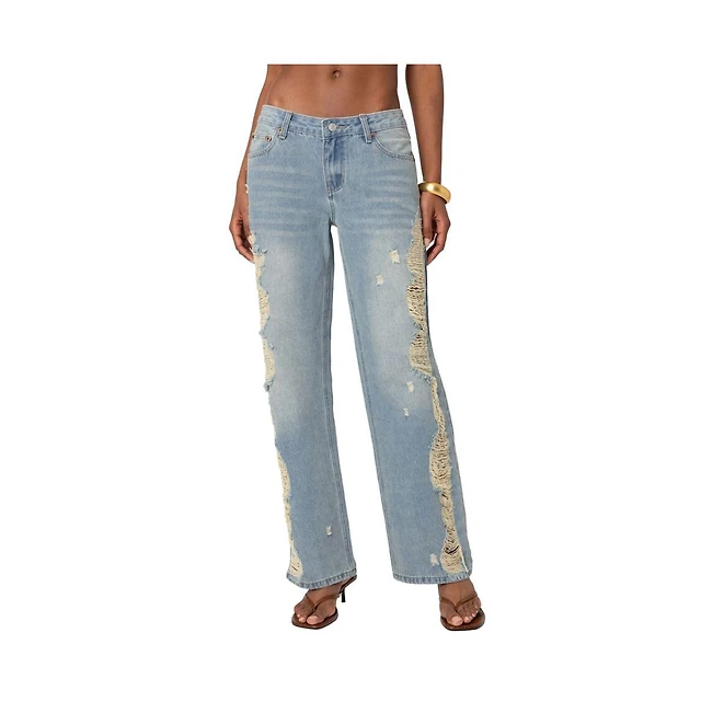 Pacsun Jade Low Rise Bootcut Jeans Lace-Up Dark Blue