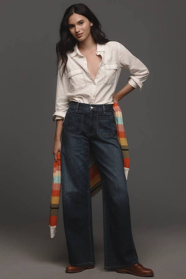The Colette Whipstitch Crop Wide-Leg Jeans by Maeve