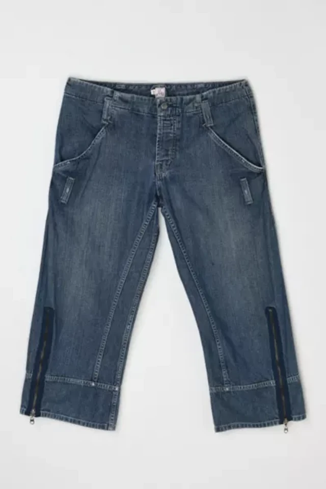 Button Front High Rise Kick Crop Jeans Mid Vintage Wash