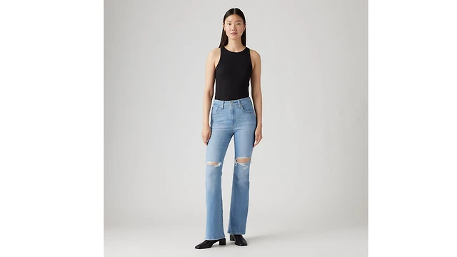 High Waisted Medium Wash Raw Hem FlexX '70s Flare Jeans