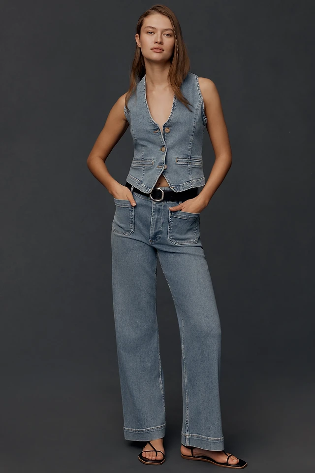 Petite Curvy Embellished Cuffed High Rise Wide Leg Crop Jeans Bright Mid Indigo Wash