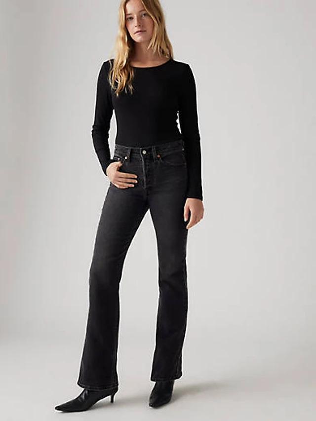 Avec Les Filles Women's Studded Belt High Rise Boot Cut Jeans
