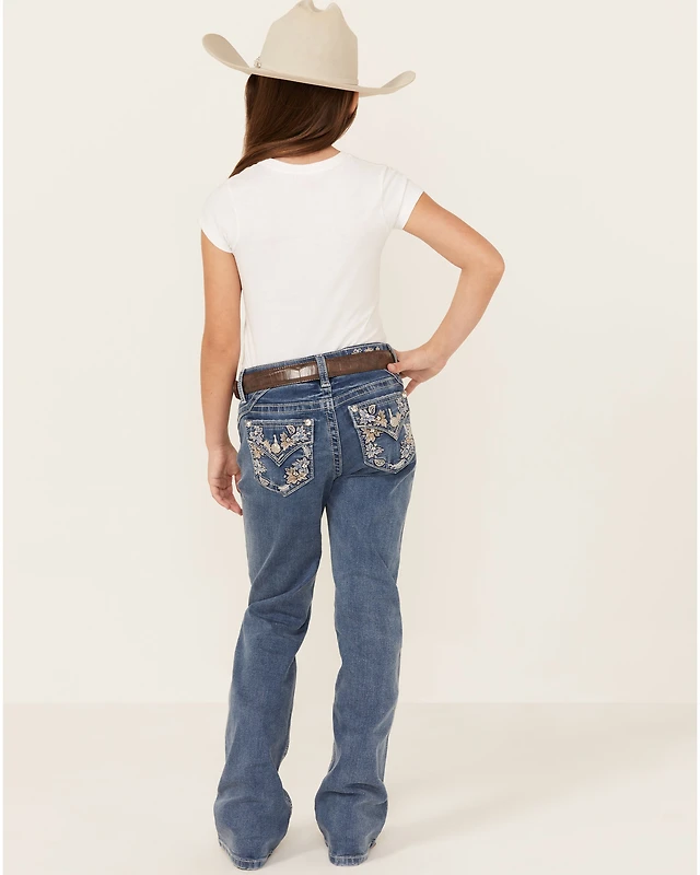 Shyanne Girls' Medium Wash Double Horseshoe Pocket Bootcut Stretch Denim Jeans