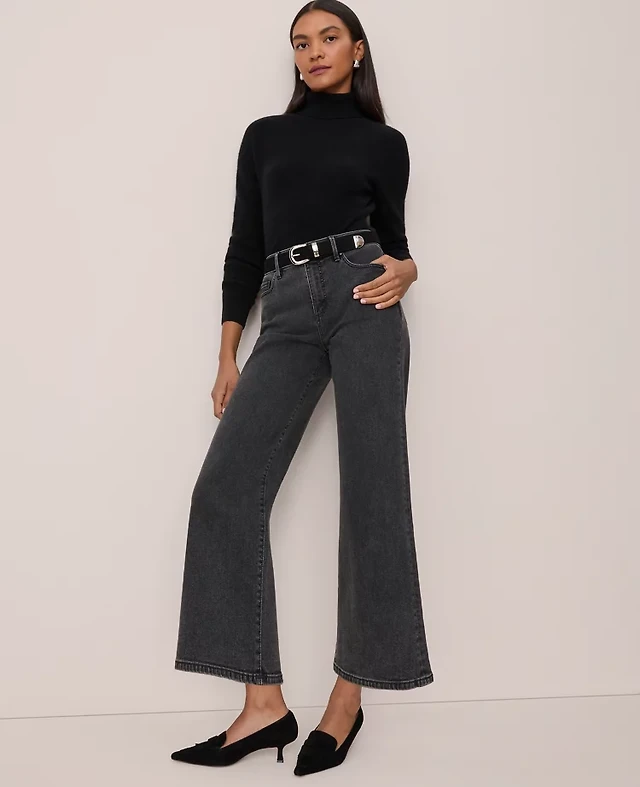 Ann Taylor The Wide-Leg Crop Jean Bright Medium Stone Wash Women's
