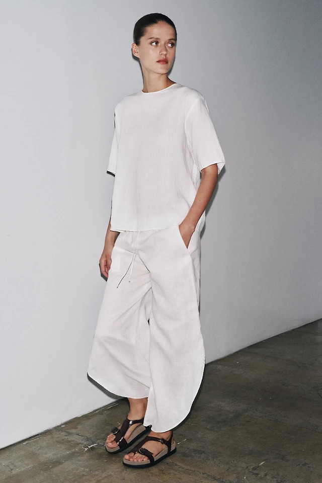 Ellen Tracy Women's Linen Smocked Wide Leg Pant