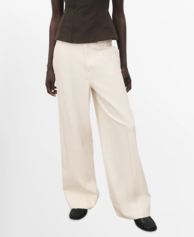Mango Women's High-Waisted Wide Leg Denim Pants