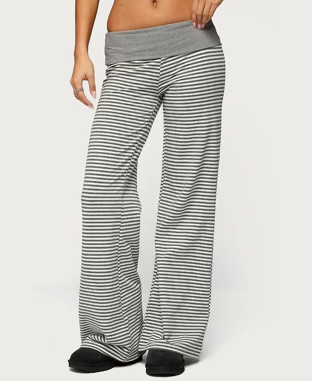 Cable & Gauge Women's Stripe Slim Fit Pull On Cropped Pant