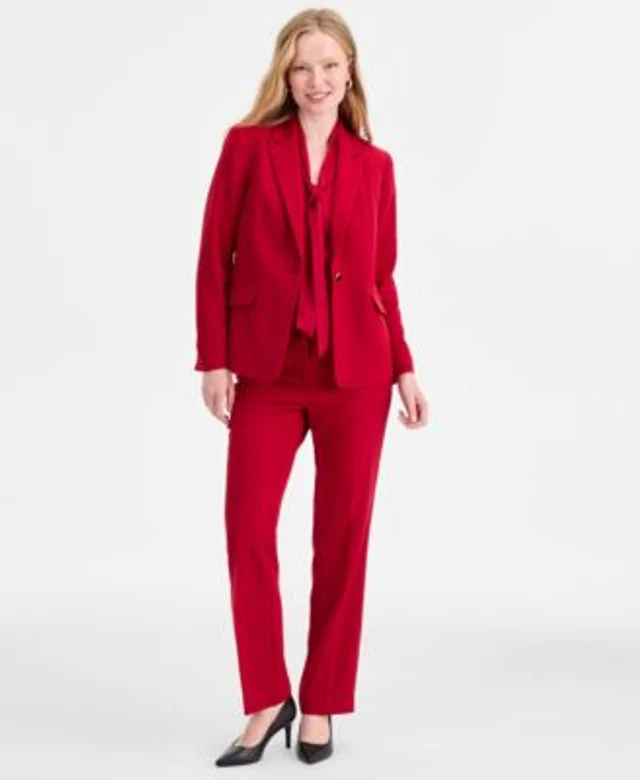Kasper Womens Stretch Crepe One Button Jacket Tie Neck Sleeveless Top Straight Leg Pant