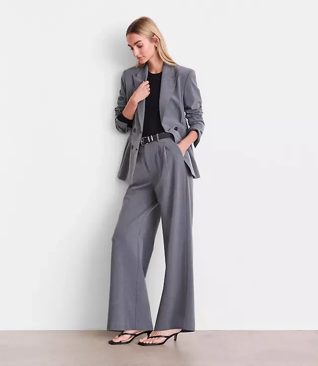 Petite LOFT Versa Seasonless Stretch Double Pleat Wide Leg Pants Heather