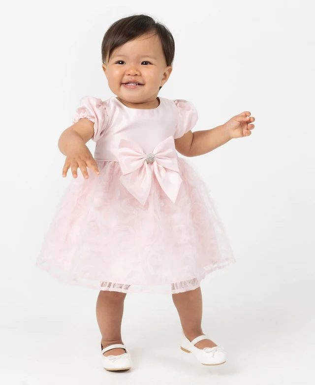 Rare Editions Baby Girls Satin Embroidered Bodice Jacket Dress