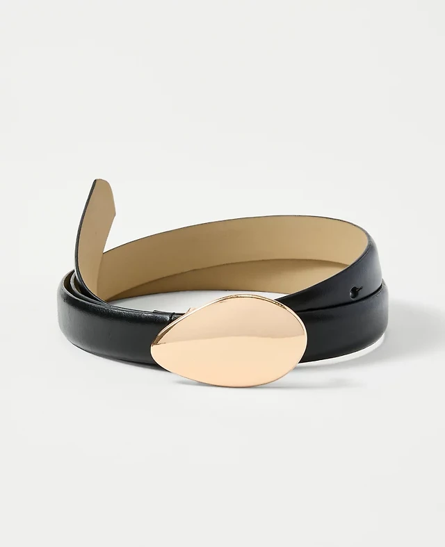 Ann Taylor Leather Oval Buckle Belt Black Women's