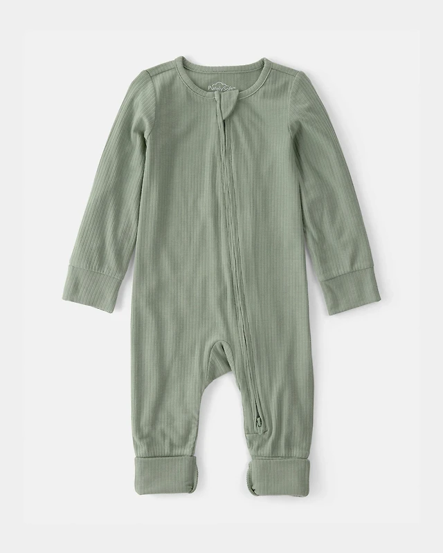 Baby Bear 2-Way Zip Ribbed Sleep & Play Pajamas - Brown