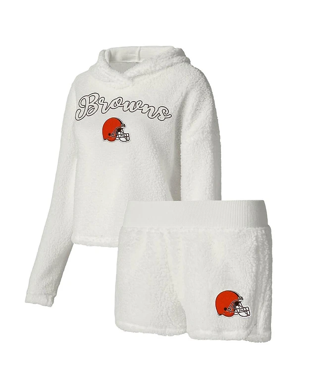 Women's Concepts Sport White Green Bay Packers Fluffy Pullover Sweatshirt and Shorts Sleep Set